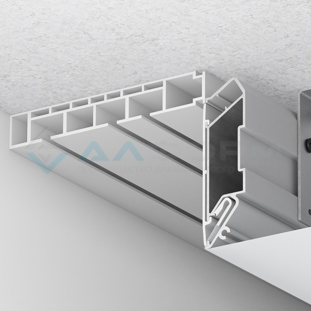 Sigma Plus – алюминиевый профиль для монтажа прямоугольных и криволинейных ниш в натяжном потолке – под ПВХ-карнизы.
