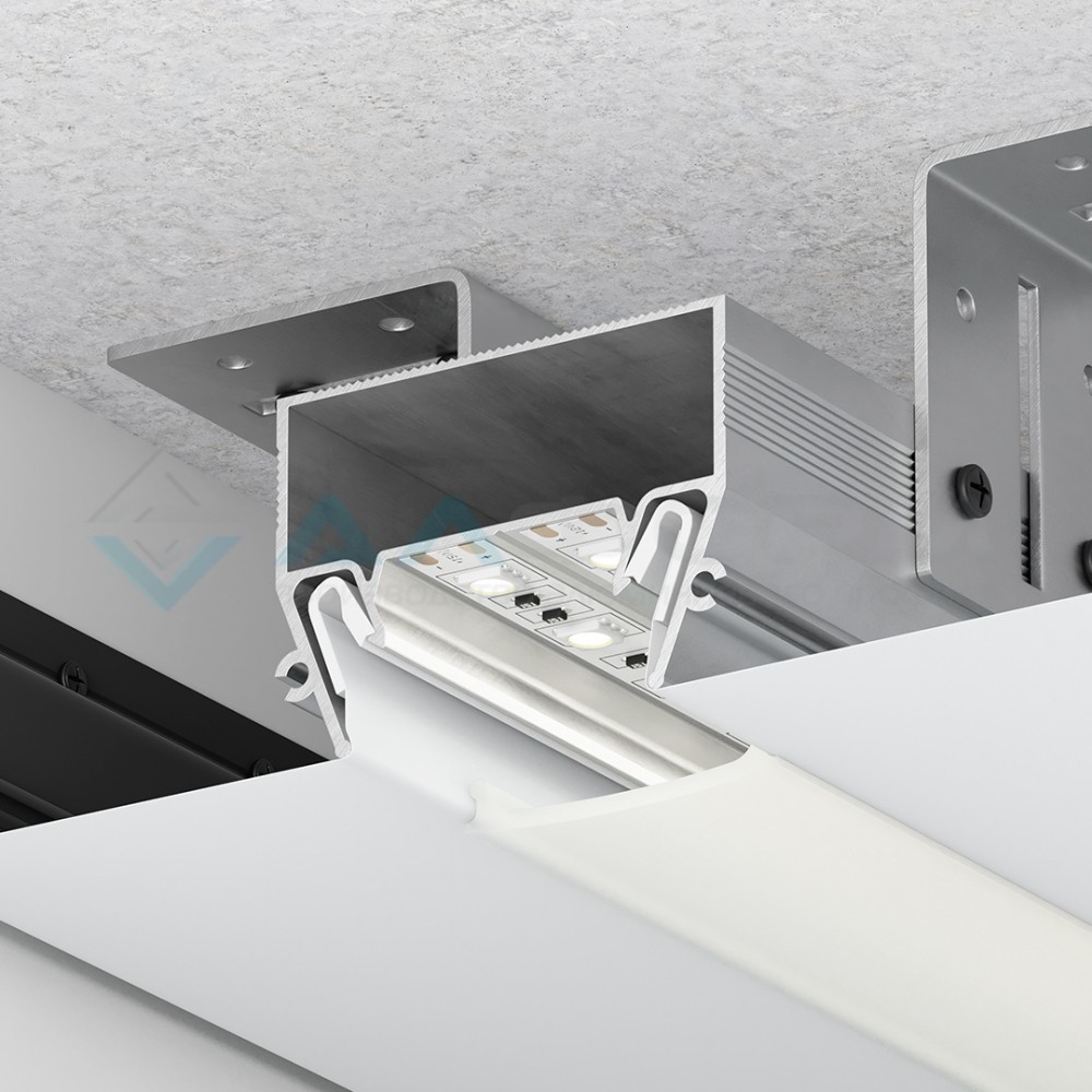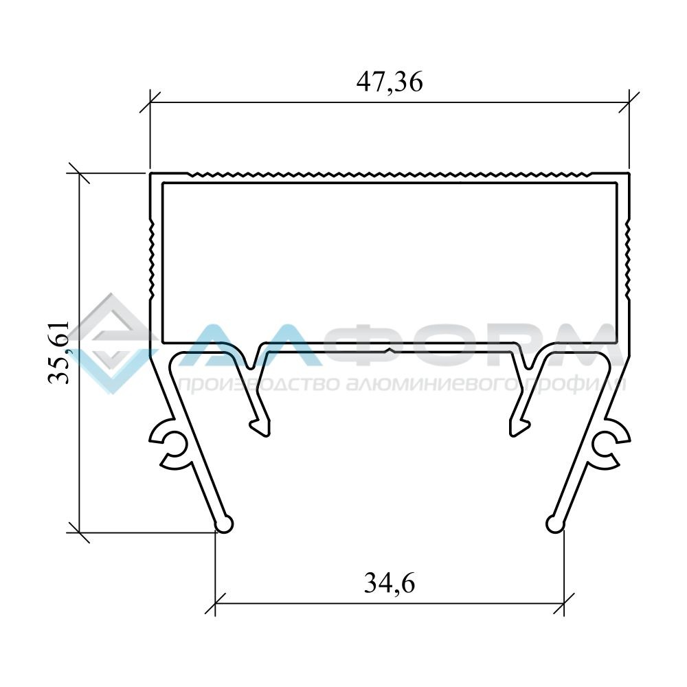 Gamma-35 – алюминиевый профиль, предназначенный для изготовления встроенной контурной подсветки натяжного потолка. Контур закрывается светорассеивающей вставкой. Можно монтировать подсветку от стены до стены, крестообразно, под разными углами.