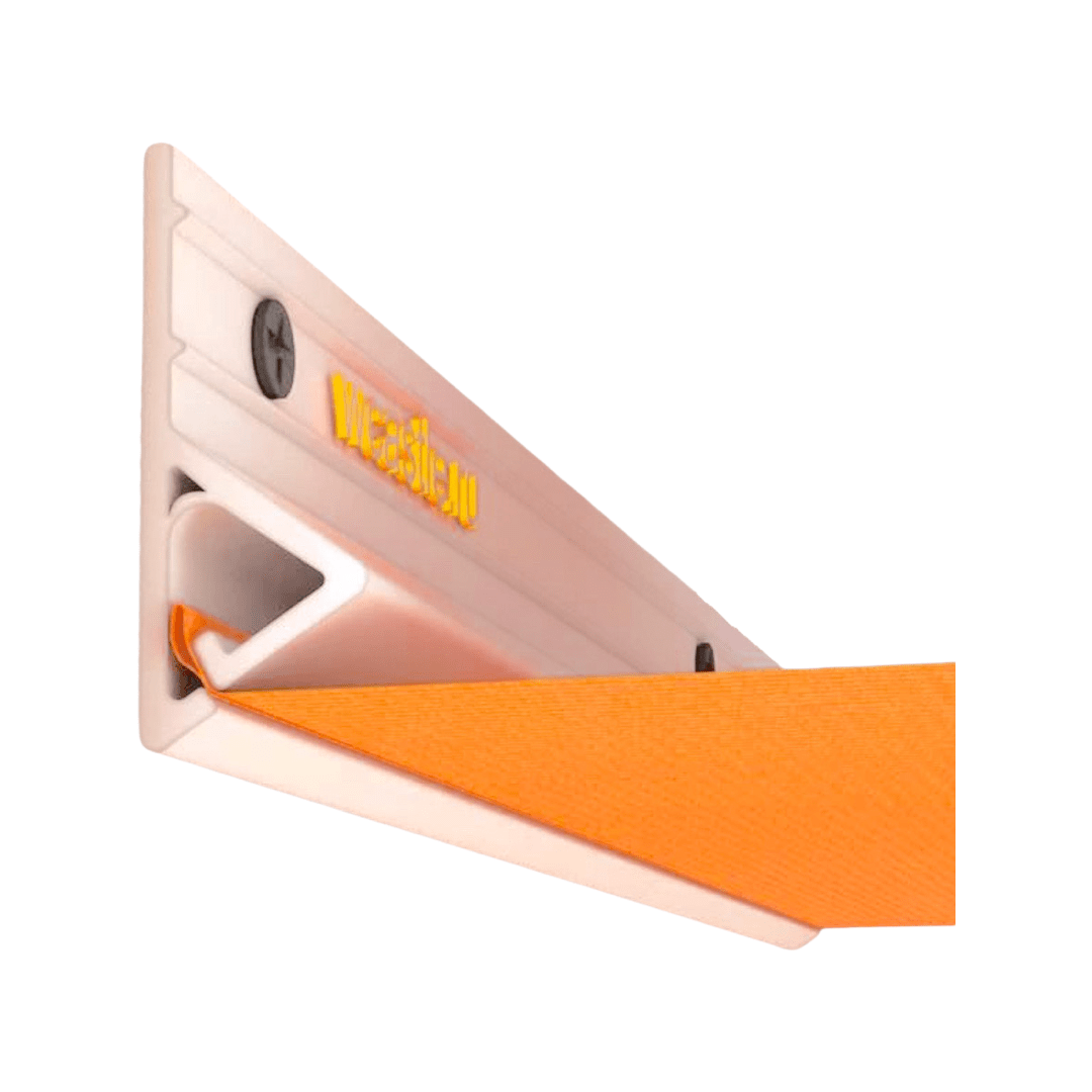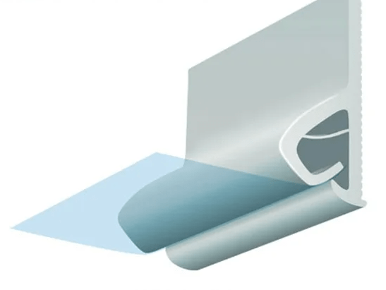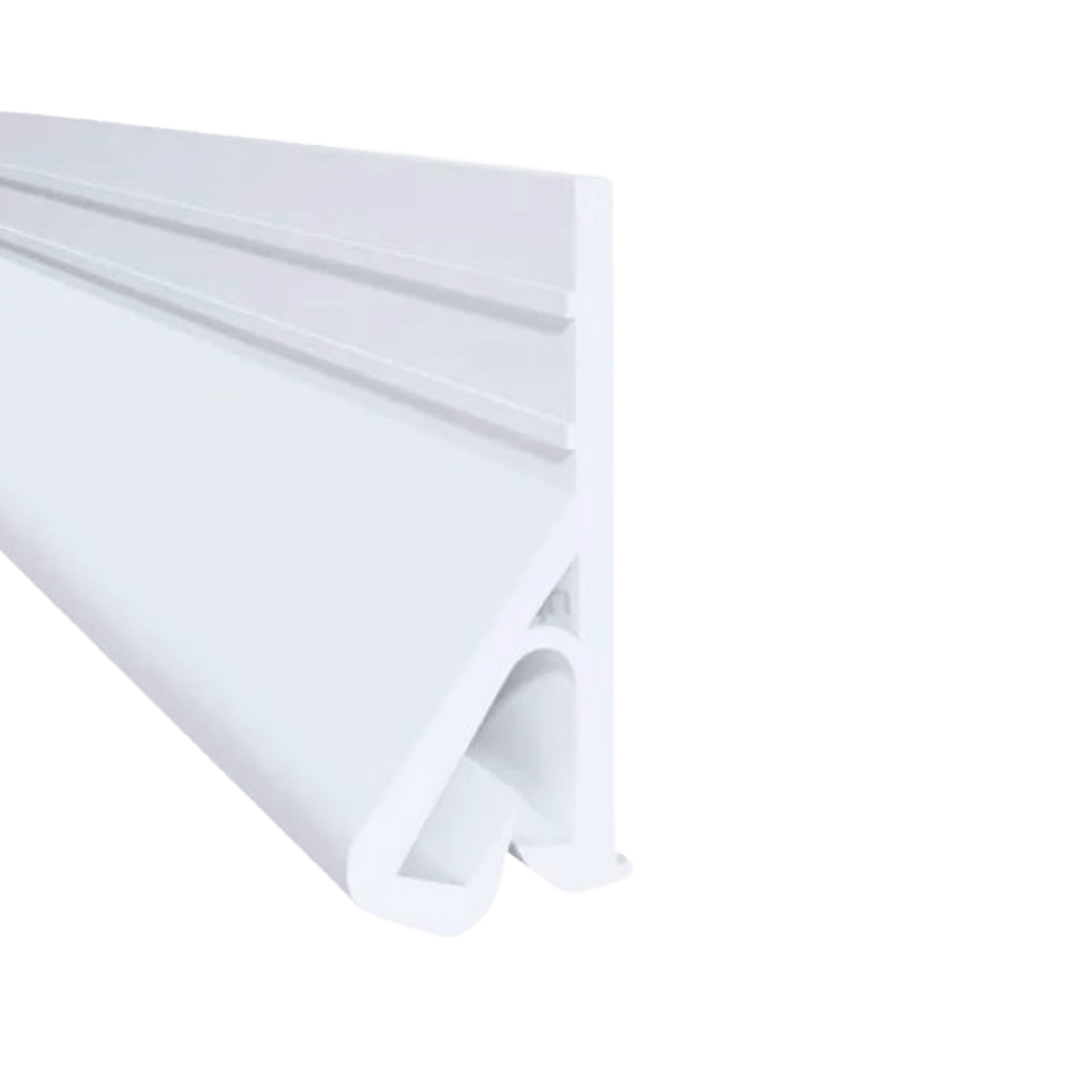 Багет "прищепка" стеновой представляет собой профиль ПВХ с упругим зажимом - клипсой.Выполнен из непластифицированного поливинилхлорида и имеет белый цвет. Его применяют для монтажа французских тканевых потолков Clipso (Клипсо) и немецких тканей Descor (Дескор).