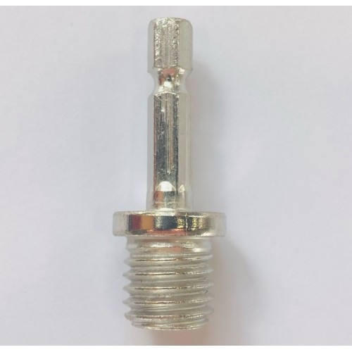 Переходник для алмазной коронки LOTUS. Диаметр резьбы 1,4 см, длина адаптера 4,5 см, диаметр хвостовика 0.6cm. 1/4" шестигранный хвостовик к резьбе M14.