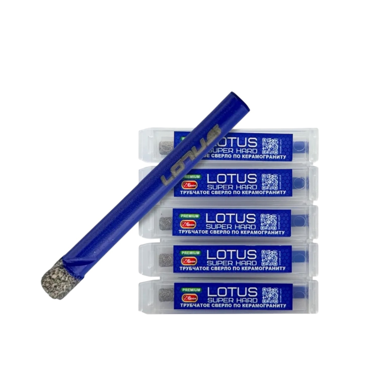 Алмазное трубчатое сверло LOTUS 6 мм. Конструкция с круглым хвостовиком подходит для большинства сверлильных патронов.