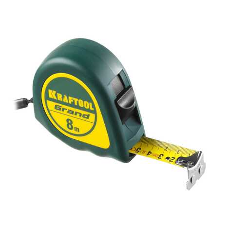 KRAFTOOL GRAND 8м / 25мм рулетка с ударостойким корпусом (ABS) и противоскользящим покрытием