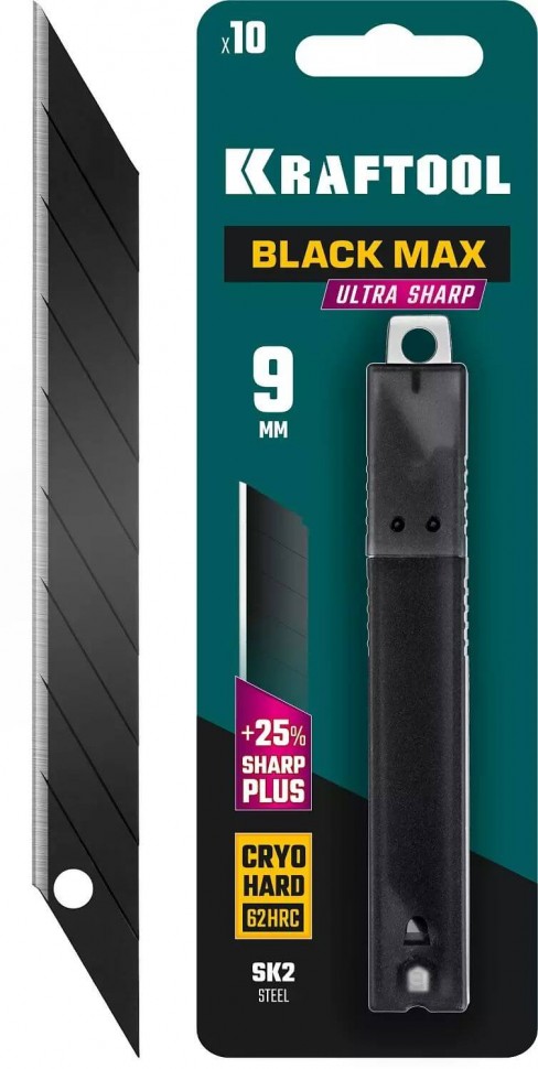 KRAFTOOL BLACK MAX 9 мм лезвия сегментированные, 9 сегментов, 10 шт