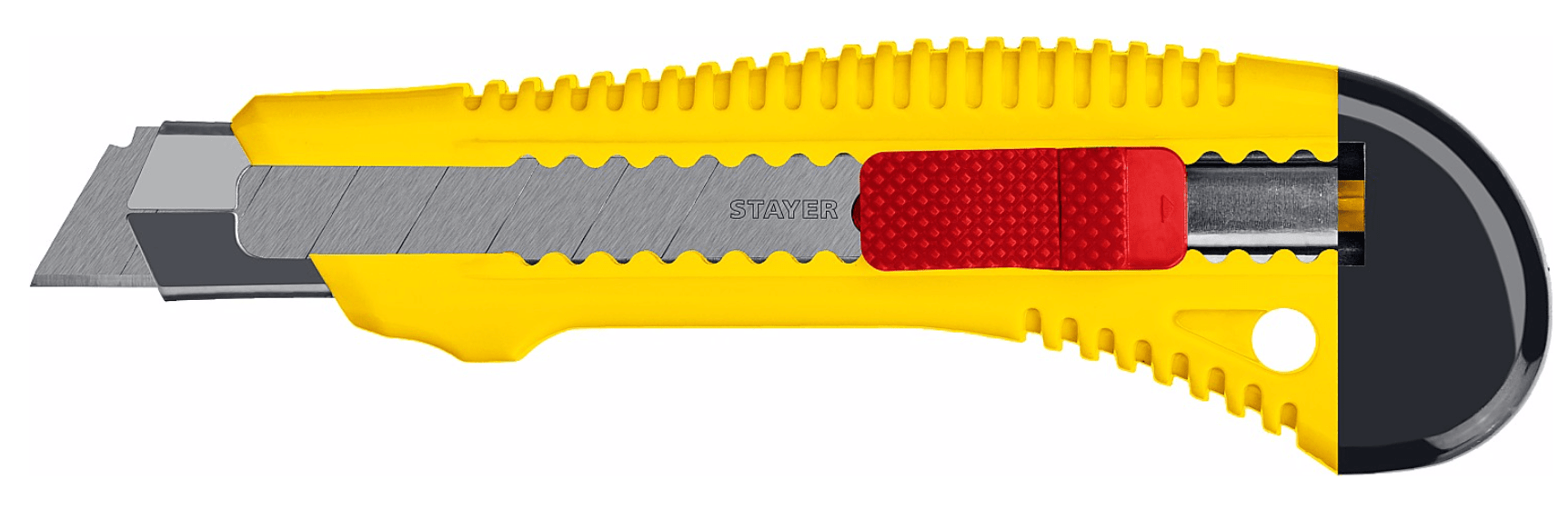 Нож Stayer Master, с выдвижным сегментированным лезвием, пластмасса, упрочнённый, 18 мм используется в целях осуществления качественной и в то же время оперативной резки различных материалов, таких как: картон, кожа или линолеум и пр.