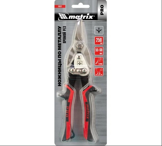Ножницы по металлу, 250 мм, прямой рез,сталь CRMO,двухкомпонентные рукоятки, PRO // Matrix
