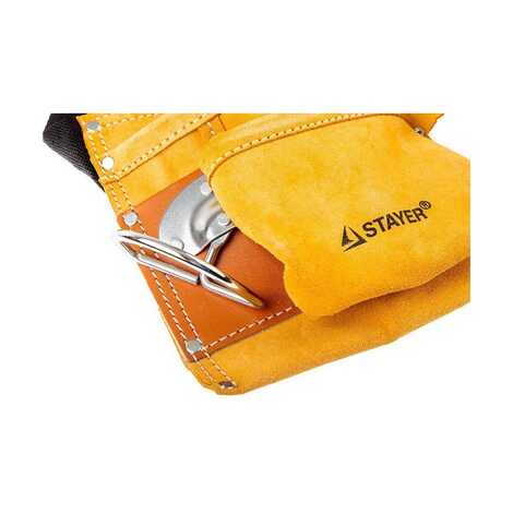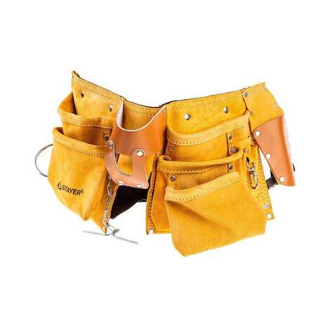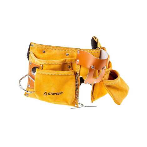 Кожаный пояс для инструментов STAYER MASTER, 10 карманов, 2 скобы - приспособление для хранения во время работы и переноса инструмента.