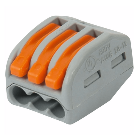 Клемма 3-х проводная – электромонтажный аксессуар для бытового и промышленного применения. Может быть использована при построении электрических цепей любого целевого предназначения: осветительных, контрольных, силовых. С помощью клеммы появляется возможность быстрого и надежного соединения многожильных или одножильных проводов сечением до 4,0 мм2 одного или разного типа, из одинаковых либо отличающихся материалов. Изделие рассчитано на максимальное напряжение до 400 В и номинальный ток 32 А.