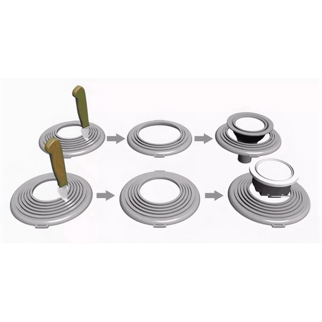 Платформа предназначена для монтажа точечных светильников различных диаметров. Благодаря универсальности конструкции, в данную платформу можно установить светильники с посадочным размером от 235 до 305 мм. Шаг изменения диаметра 10 мм. При подготовке платформы к установке необходимо выбрать нужный диаметр отверстия и с помощью ножа вырезать его по специальной канавке . Для удобства крепления перфоленты ( подвесов ) на платформе имеются специальные площадки с несквозными отверстиями. Наличие ребер жесткости и специального места для крепления перфоленты обеспечивает надежность конструкции и простоту при установке.