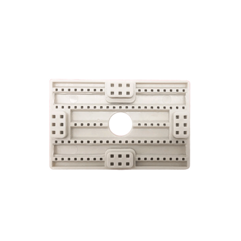 На поверхность площадки нанесены отверстия для саморезов, края площадки закруглены, имеет четыре точки крепления к потолку.