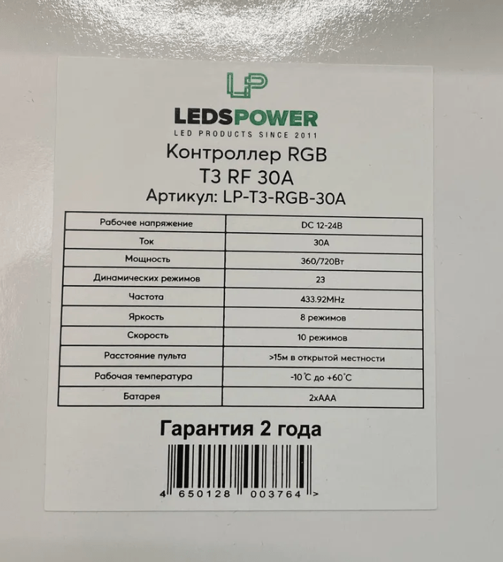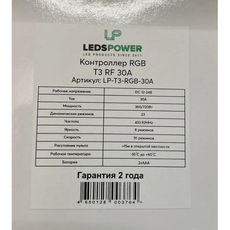 Контроллер LEDS POWER, RGB, T3, RF, 30A, Сенсорный