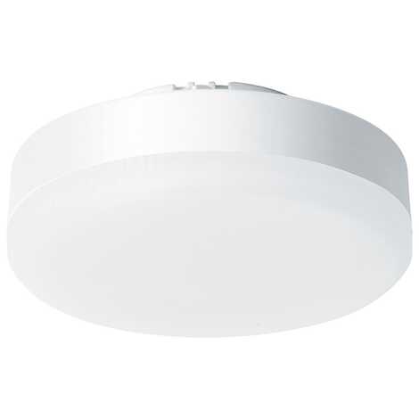 Светодиодная лампочка в форме таблетки с цоколем GX53 и размерами 80 мм по высоте обладает мощностью в 12 W, благодаря чему она может осветить 4 кв. м. Цветовая температура – 4000 К, т.е. дневной свет, подходящий для рабочего настроя (не рекомендуется для детской комнаты). Изделие рассчитано на использование в сети с переменным напряжением в 220-240В.