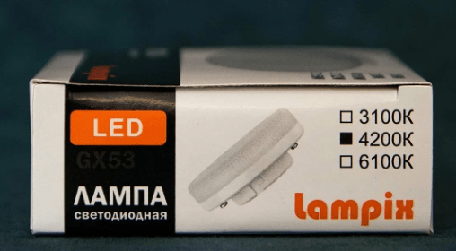 Помимо основных световых температур таких как- 2700K (теплый белый свет- соответствует матовой лампе накаливания и используется в домашних условиях), 4200K(естественно-белый свет – соответствует естественному освещению и используется для освещения офисов и учебных заведений), 6000K(яркий белый свет – соответствует естественному освещению в ясную солнечную погоду), лампы gx53 в своей линейке представлены еще световой температурой в 2400-2500К. Так называемый «Золотистый свет» благодаря слегка желтоватому свечению создаст уют в любом помещении. Мощность ламп варьируется от 3.0 Вт до 15.0 Вт.