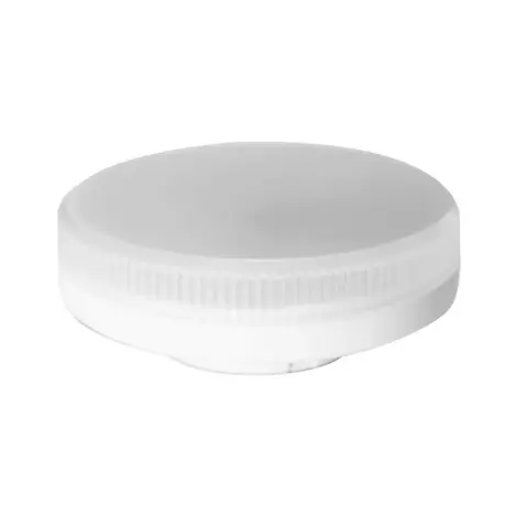 Светодиодная лампочка в форме таблетки с цоколем GX53 обладает мощностью в 8 Вт. Цветовая температура — 4200К, т.е. дневной белый свет. Изделие рассчитано на использование в сети с переменным напряжением в 175-265В.