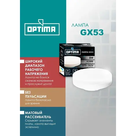 Лампа OPTIMA GX 53 (IP40.8W.4200K.Белый.720lm)