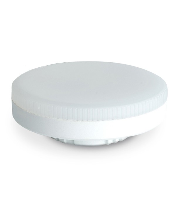 Светодиодная лампочка в форме таблетки с цоколем GX53 обладает мощностью в 8 Вт. Цветовая температура — 5000К, т.е. дневной белый свет. Изделие рассчитано на использование в сети с переменным напряжением в 175-265В.