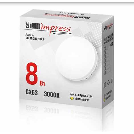 Лампа светодиодная GX53 8Вт 3000К SignImpress