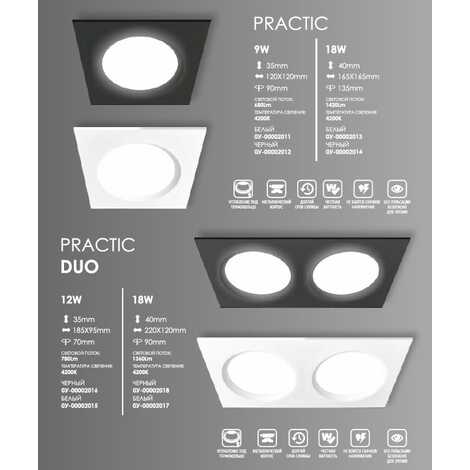 LED Панель квадратная PRACTIC DUO Черная, 12W, 4200K, 95*185