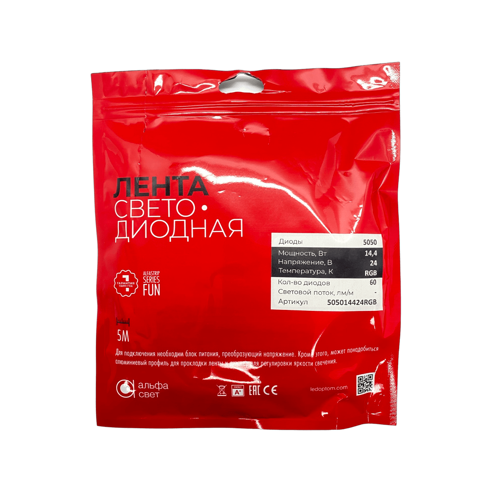 Лента светод. ALFA 3M, RGB 14.4W/24V/60led (5м.)