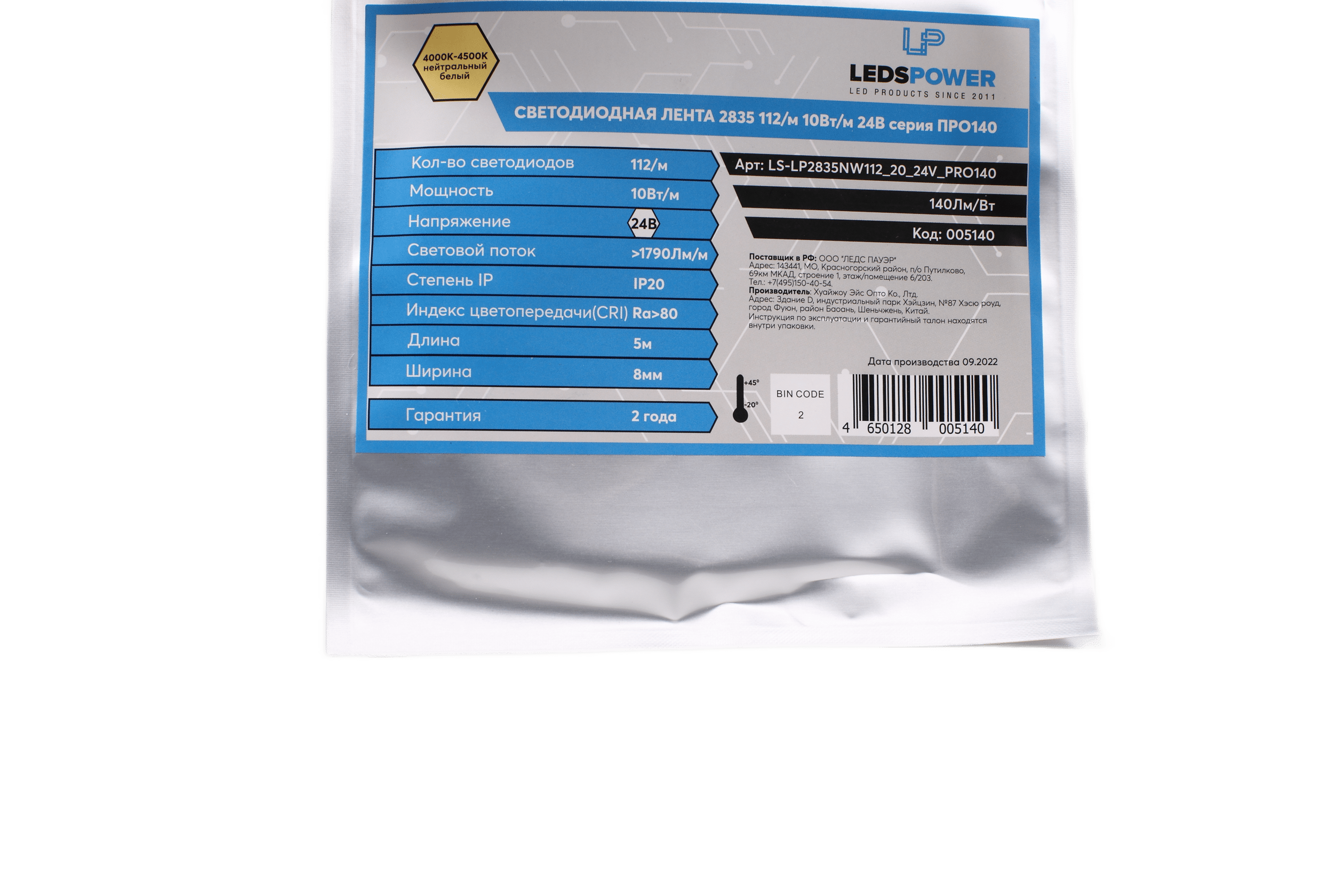 Минимальное количество для товара "Лента светод. LEDS POWER, 10W/24V/4000K/112led, Серия PRO140 (5м.)" 5.
