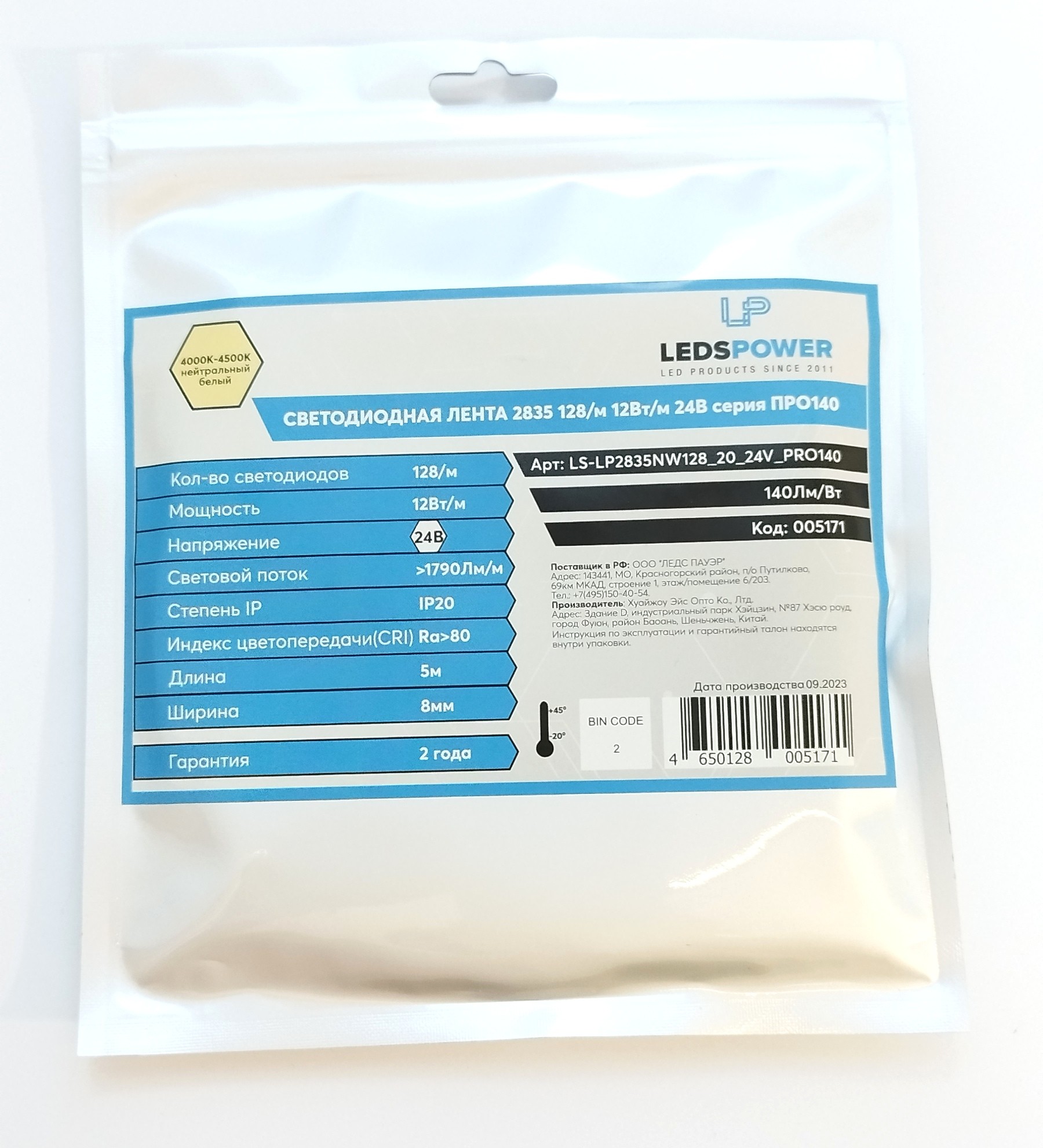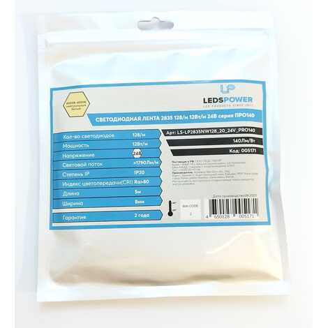 Минимальное количество для товара "Лента светод. LEDS POWER, 12W/24V/4000K/128led, Серия PRO140 (5м.)" 5.
