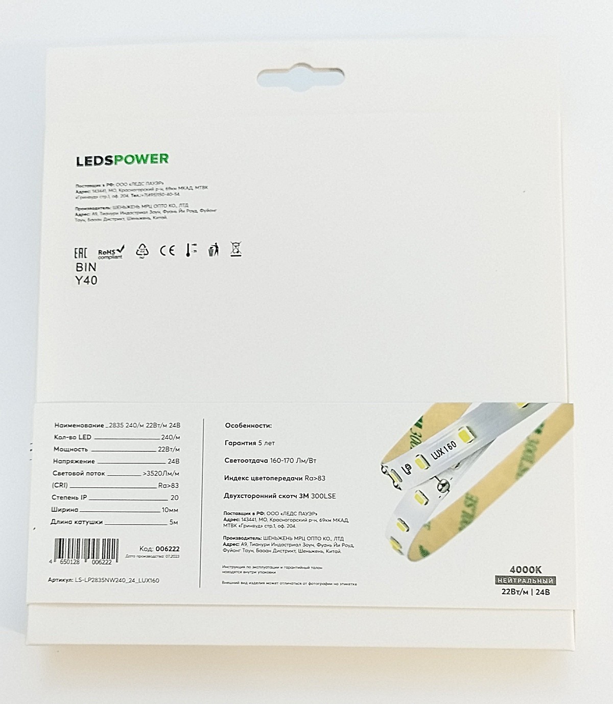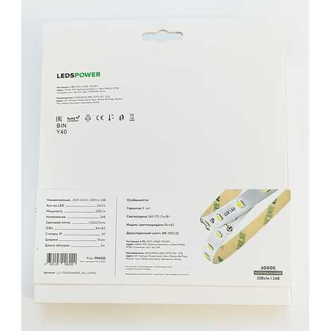 Минимальное количество для товара "Лента светод. LEDS POWER, 22W/24V/4000K/240led, Серия LUX160 (5м.)" 5.