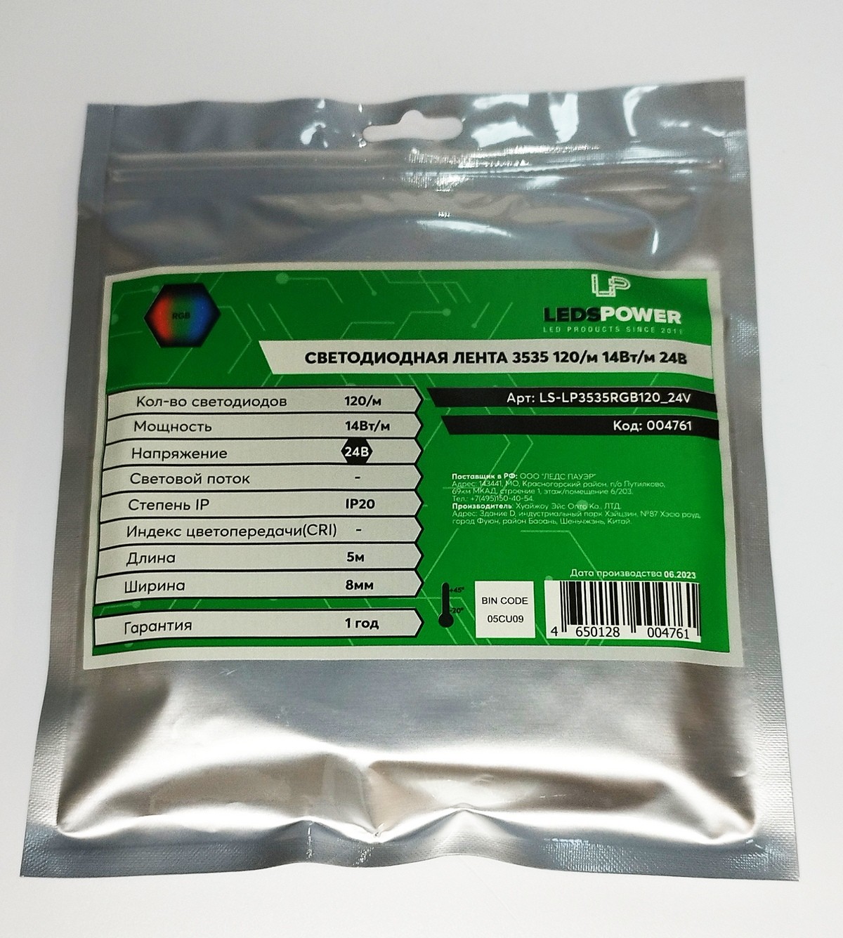 Минимальное количество для товара "Лента светод. LEDS POWER, RGB 19,2W/24V/120led (5м.)" 5.