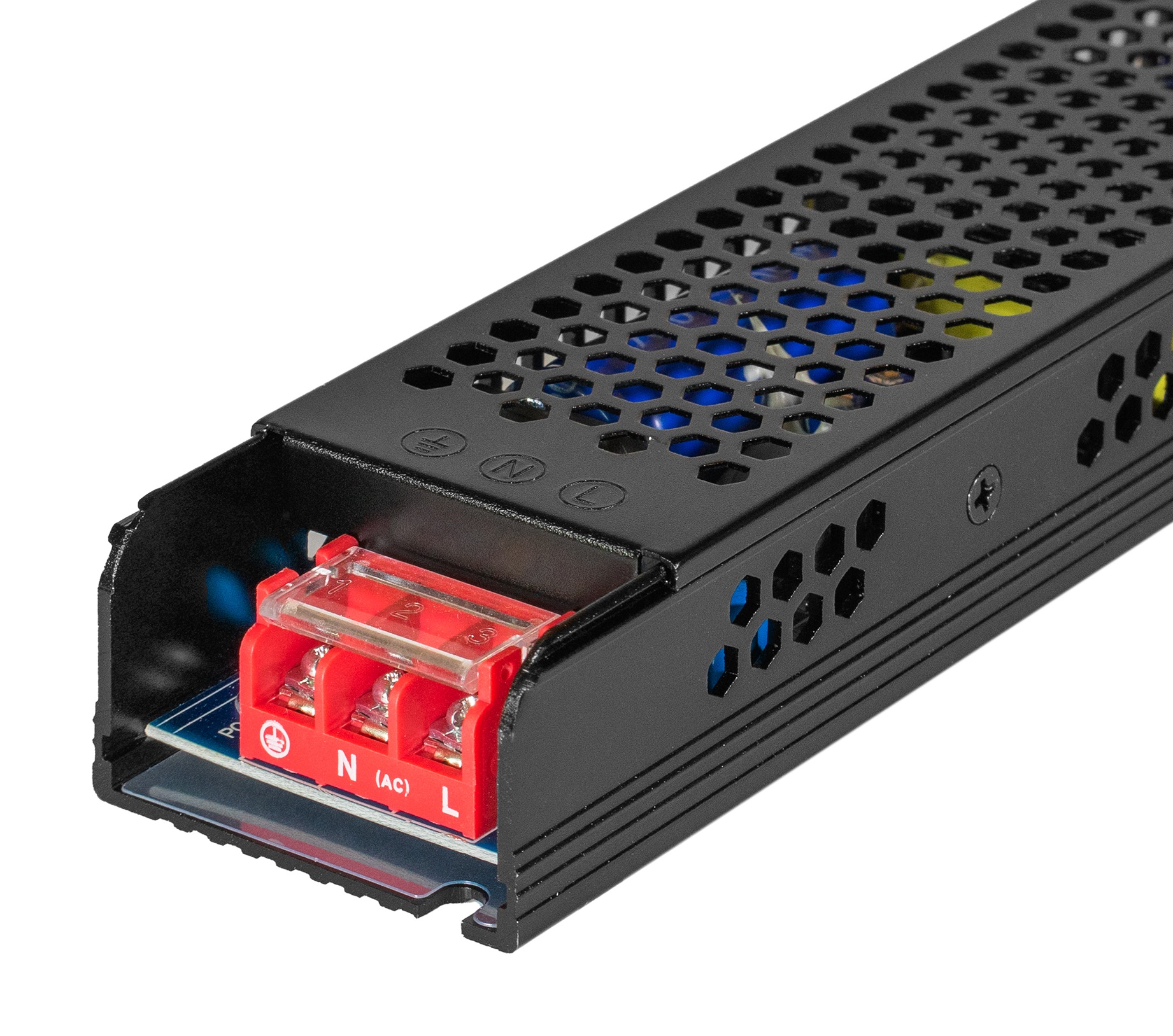 Блок питания для светодиодной ленты предназначен для корректного питания светодиодной ленты, так же он обеспечивает защиту от перегрузки и короткого замыкания. Блок питания выбирается исходя из общей мощности светодиодной ленты + 35% запаса.