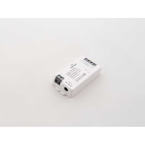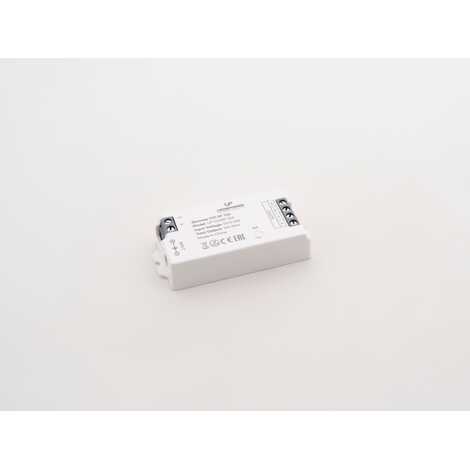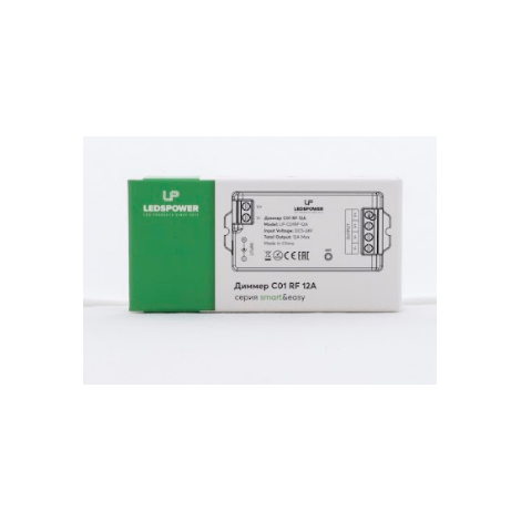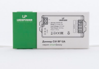 Диммер работает с одноцветной светодиодной лентой (обычно 12В или 24В) через блок питания. Для RGB или RGBW ленты нужен другой контроллер (цвета обычный диммер регулировать не сможет).