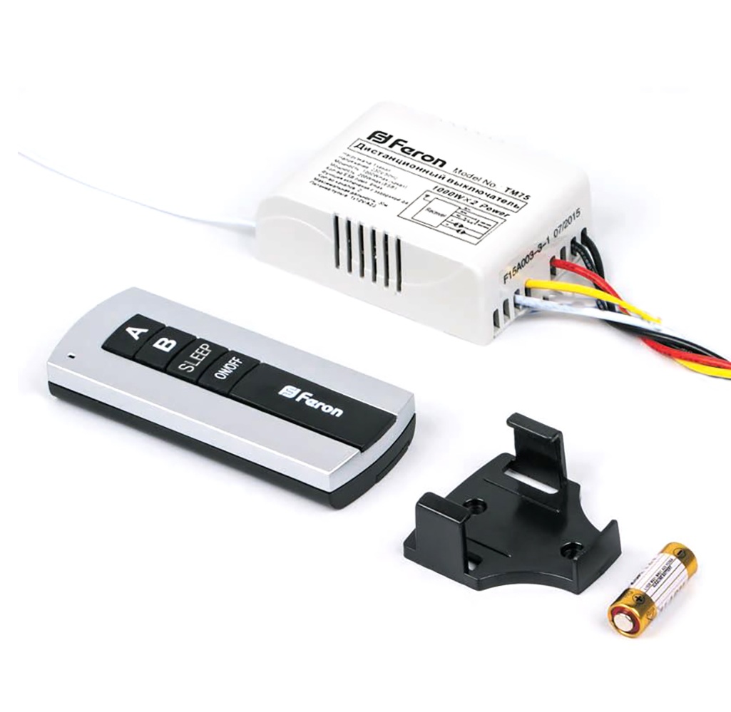 Дистанционный выключатель ТМ75 имеет 2 канала, на каждый из которых можно подключить только часть осветительных приборов в помещении и включать эти части, с помощью пульта раздельно. Либо возможно подключить все каналы для всего освещения. Большой запас мощности на каждом канале, позволяет подключать мощные и многоламповые осветительные приборы.