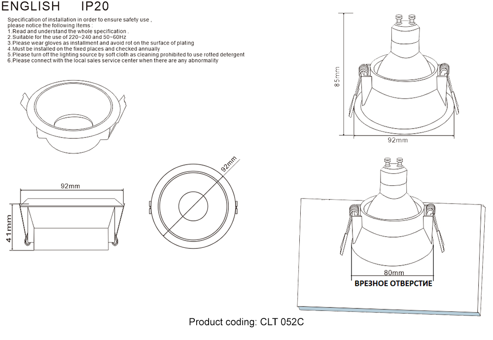 CRYSTAL LUX Светильник встраиваемый CLT 052C WH-GO 064.010 92x41mm