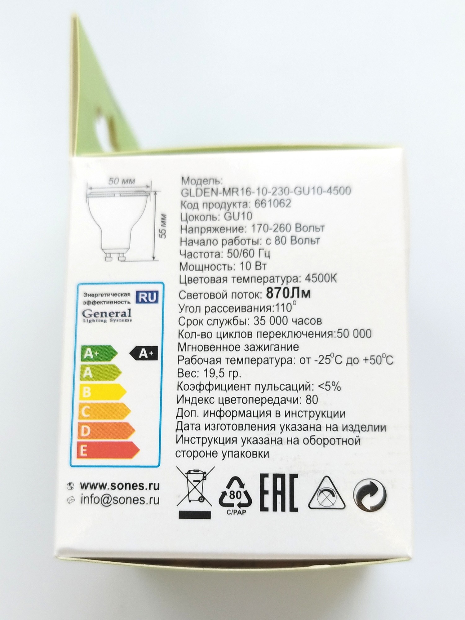 Лампа General, MR16/GU10, 10W, 4500К
