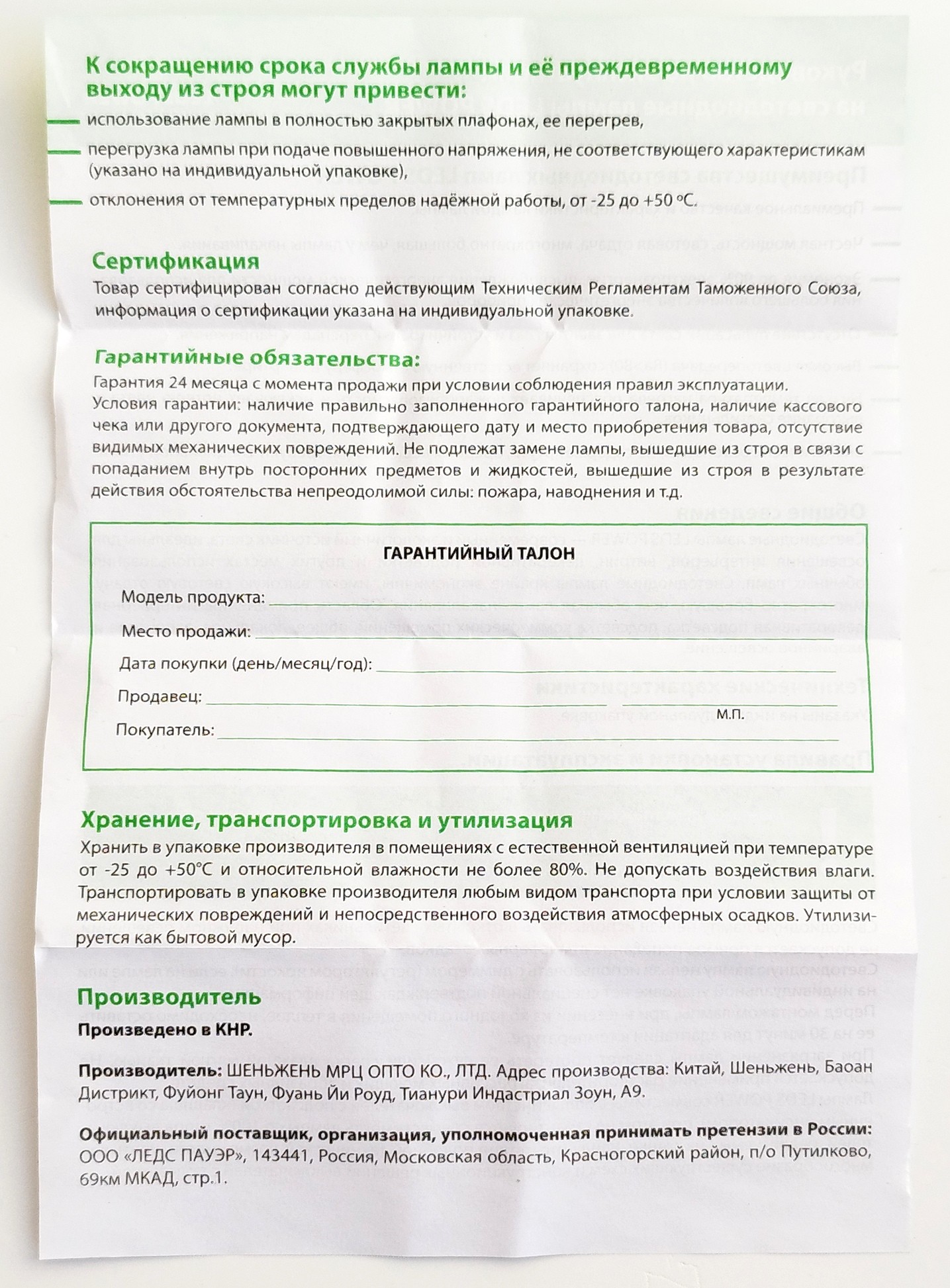 - Гарантийный срок2 года