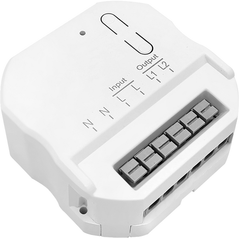 LD303 Контроллер для управления осветительным оборудованием на 2 канала, радиочастотный, с напряжением 230V мощностью для ЛОН 1200Вт и 500Вт для LED, максимальный ток 2,6А, цвет белый, IP20. Контроллер подключается к сети 230V и устройству, которым вы хотите управлять, например, к люстре. Для передачи сигнала используется радиоканал 433 МГц, что позволяет размещать выключатели (TM81, TM82, TM83) в любом удобном месте и перемещать их по мере необходимости. Все, что необходимо сделать – это установить контроллер в разрыв фазы, «привязать» нужную клавишу к контроллеру и установить или использовать как пульт. Допустимое расстояние между контроллером и пультом до 80м. без перекрытий и до 25 м. с перекрытиями. Преимущество беспроводной системы заключается в том, что выключатель системы работает без батареек на основе пьезоэлемента. Устройства можно объединить в одну систему.