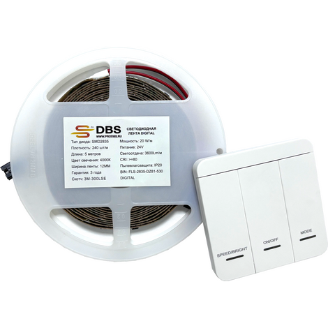 Лента светодиодная 200LUX DR 2835, 20w, 24V, 4000K, 160lm, 240led, CRI83, 10мм, IP20 Вода