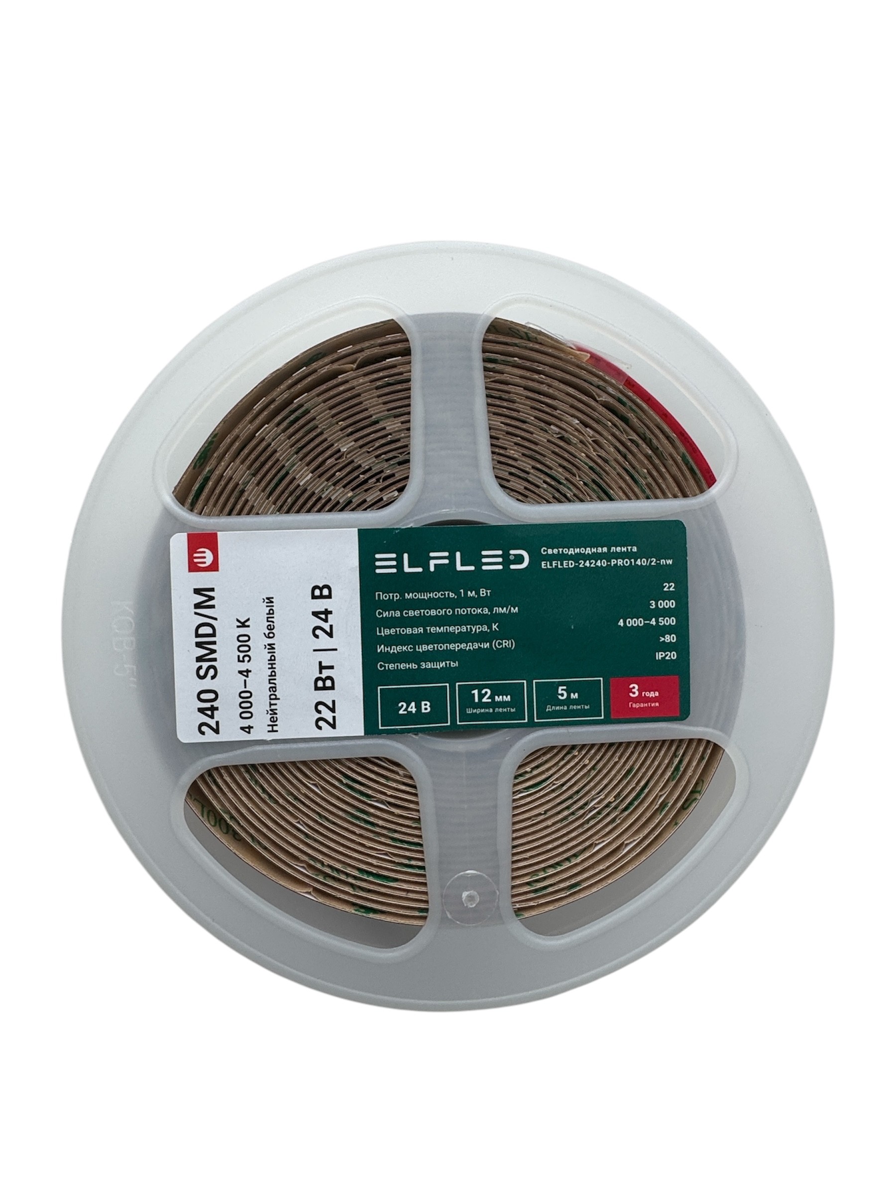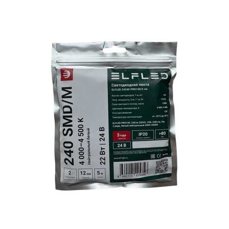 Лента светодиодная ELFLED PRO140 ДВУХРЯД., 22Вт/м, 24В, нейтр., 4000-4500К, 240д/м, 5м