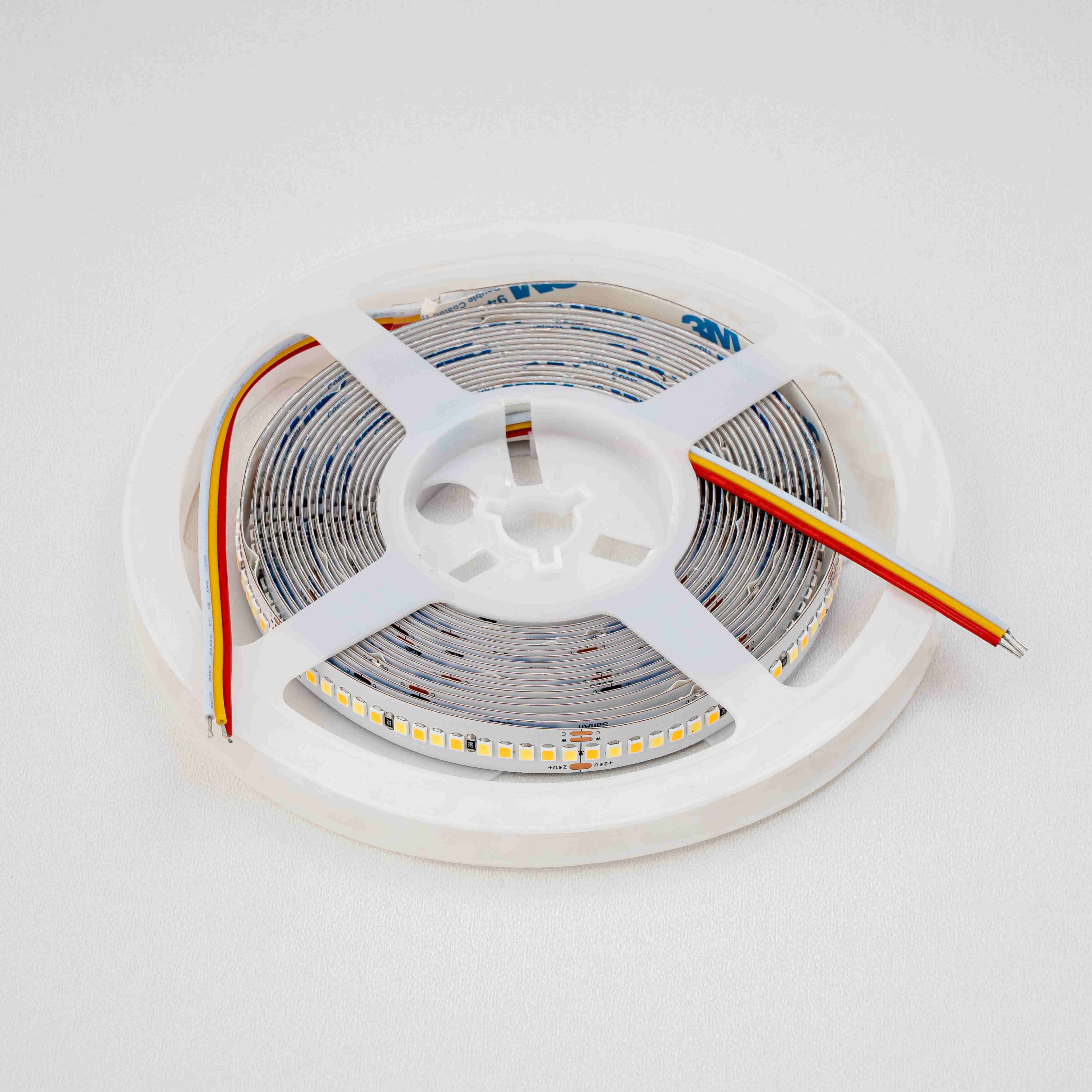 CCT светодиодные ленты — это тип настраиваемой системы освещения, позволяющей регулировать цветовую температуру от теплого белого (примерно 3000K) до холодного белого (до 6000K). Эта гибкость полезна для создания различных настроений и оптимизации освещения для разных условий. В светодиодных лентах CCT используются два типа светодиодов (теплый и холодный), интегрированные в один корпус, и их яркость или цветовая температура могут управляться с помощью специального контроллера.