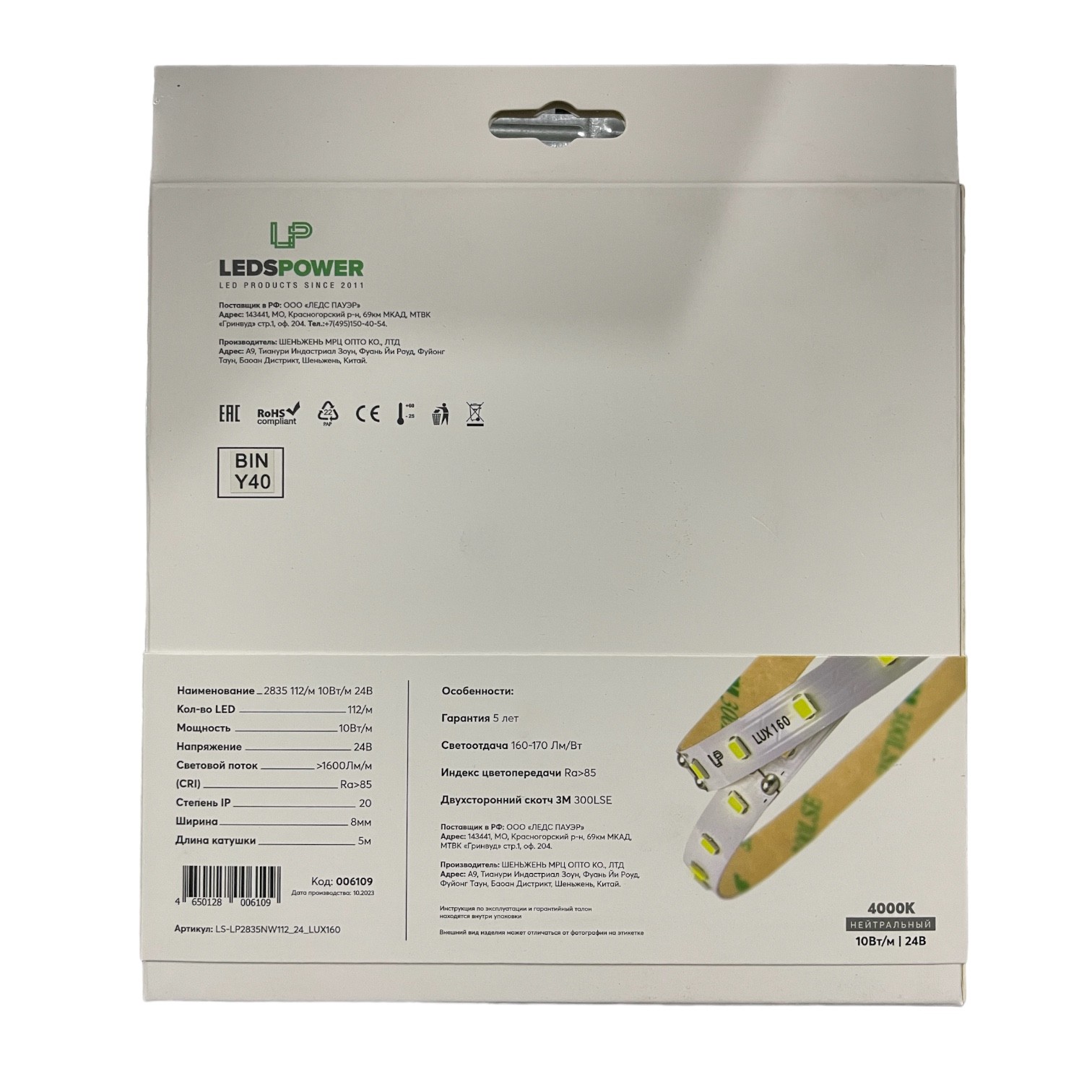 Индекс цветопередачи Ra>80, высококачественный скотч, единый BIN, эффективность до 1300Лм/м, двухслойная подложка из 100% меди.