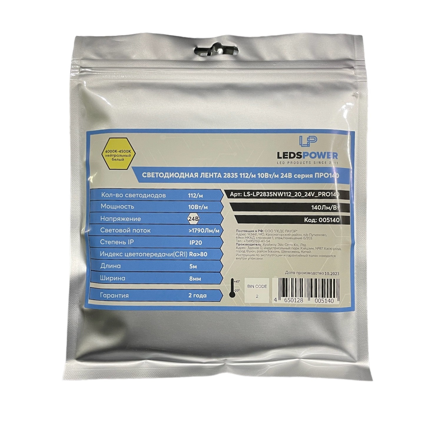 Светодиодная лента LEDS POWER (серия ПРО140), 5м, 24В, IP20, 112 LED/m, нейтральный белый.