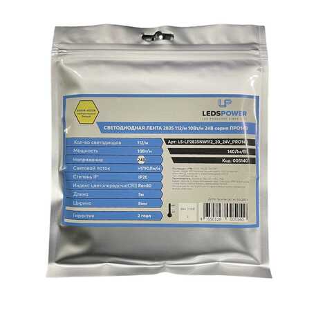 Светодиодная лента LEDS POWER 2835 10Вт/м, 24В, 112д/м, нейтральная серия ПРО140