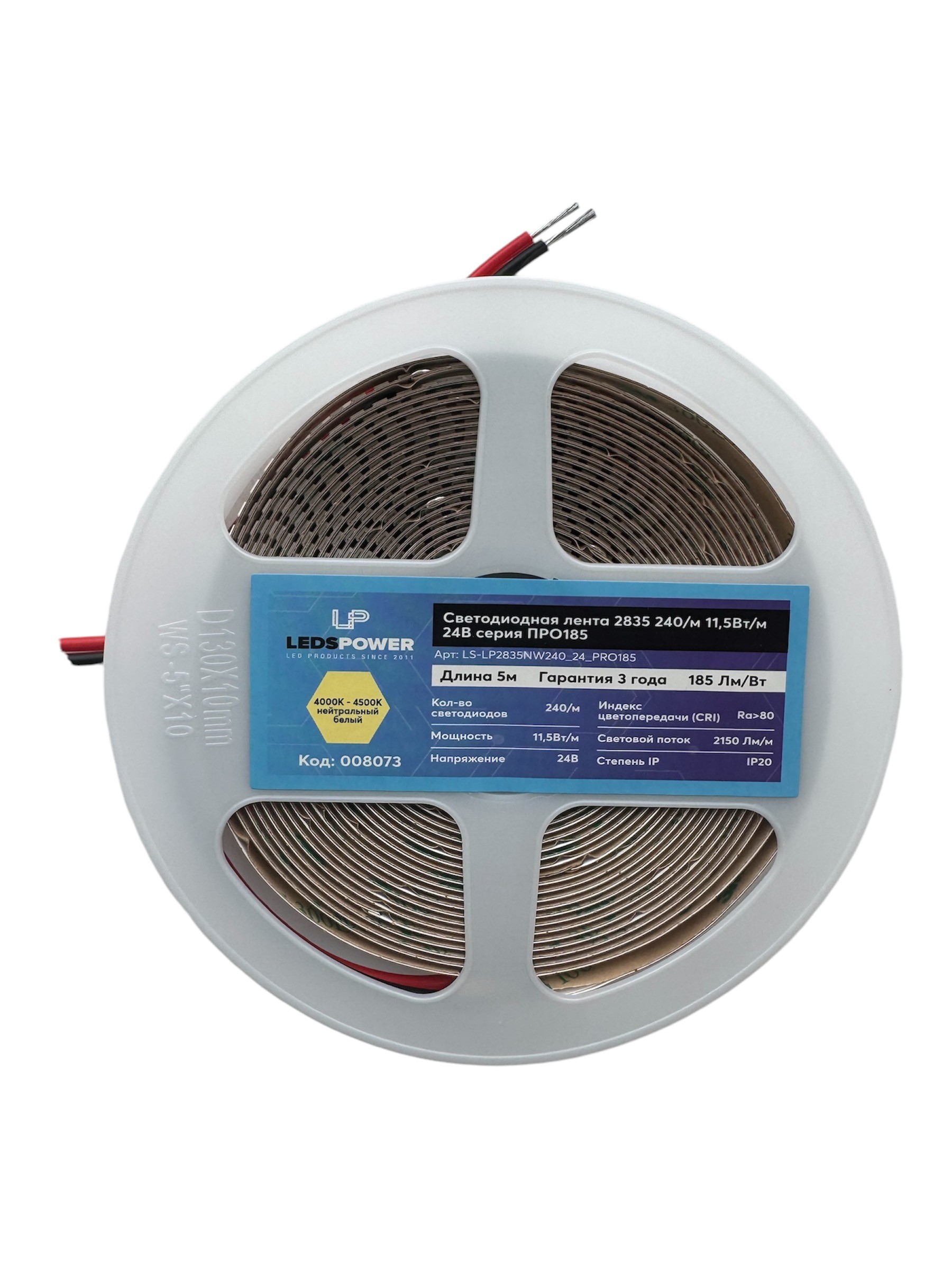 Светодиодная лента LEDS POWER (серия ПРО185), 5м, 24В, IP20, 240 LED/m, нейтральный белый.