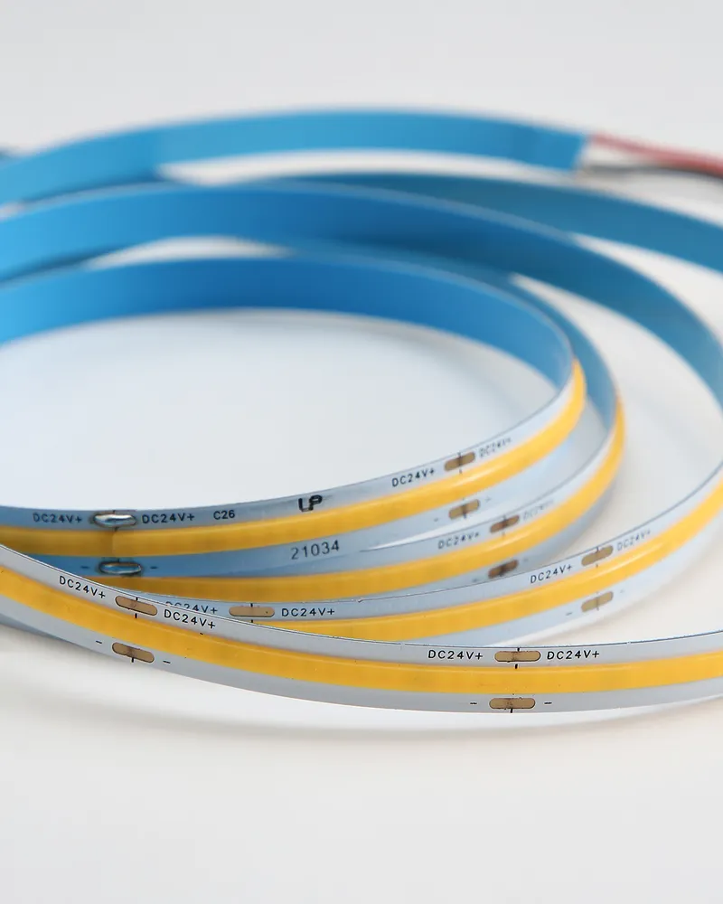 ● Самая передовая лента. У чипов COB больше диодов на единицу площади. Кроме этого, они покрыты общим слоем люминофора. Что обеспечивает отсутствие воздействия воздуха на светодиоды, увеличенный срок службы и равномерный поток света.