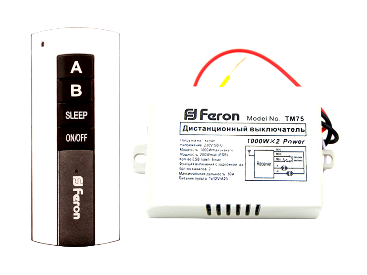 Дистанционный выключатель для светильников (2-х канальный ), FERON TM75, IP20, 230V, 1000W цвет черное серебро, 97*53*25мм