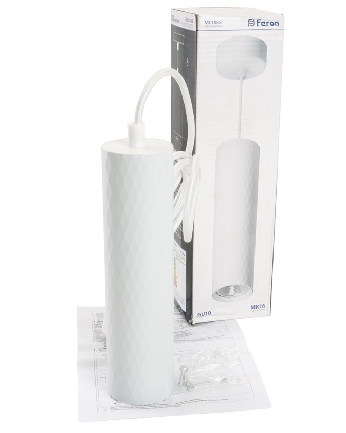 Светильник Подвес 1,7м. FERON, ML1888(48800) PRISM, под лампу MR16/GU10, Белый (55х55х200)