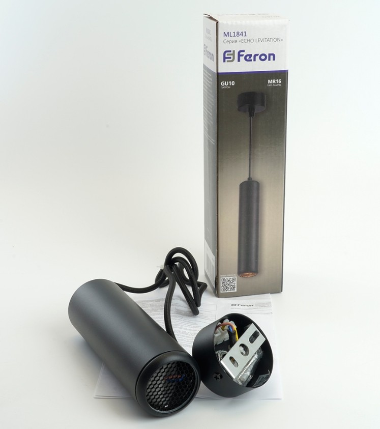 Светильник Подвесной FERON, ML1841(48394) ECHO, антибликовая сетка, под лампу MR16/GU10, Чёрно-Золотой (54х54х160)