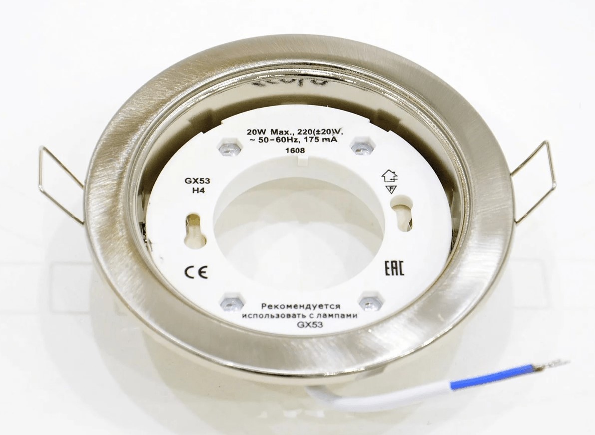 Светильник рекомендован к использованию со светодиодными или энергосберегающими лампами GX53 (лампа в комплект не входит).