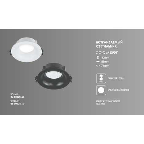 Светильник ART ZOOM, Встраиваемый Круг Белый (под лампу MR16) 85х75х40мм.
