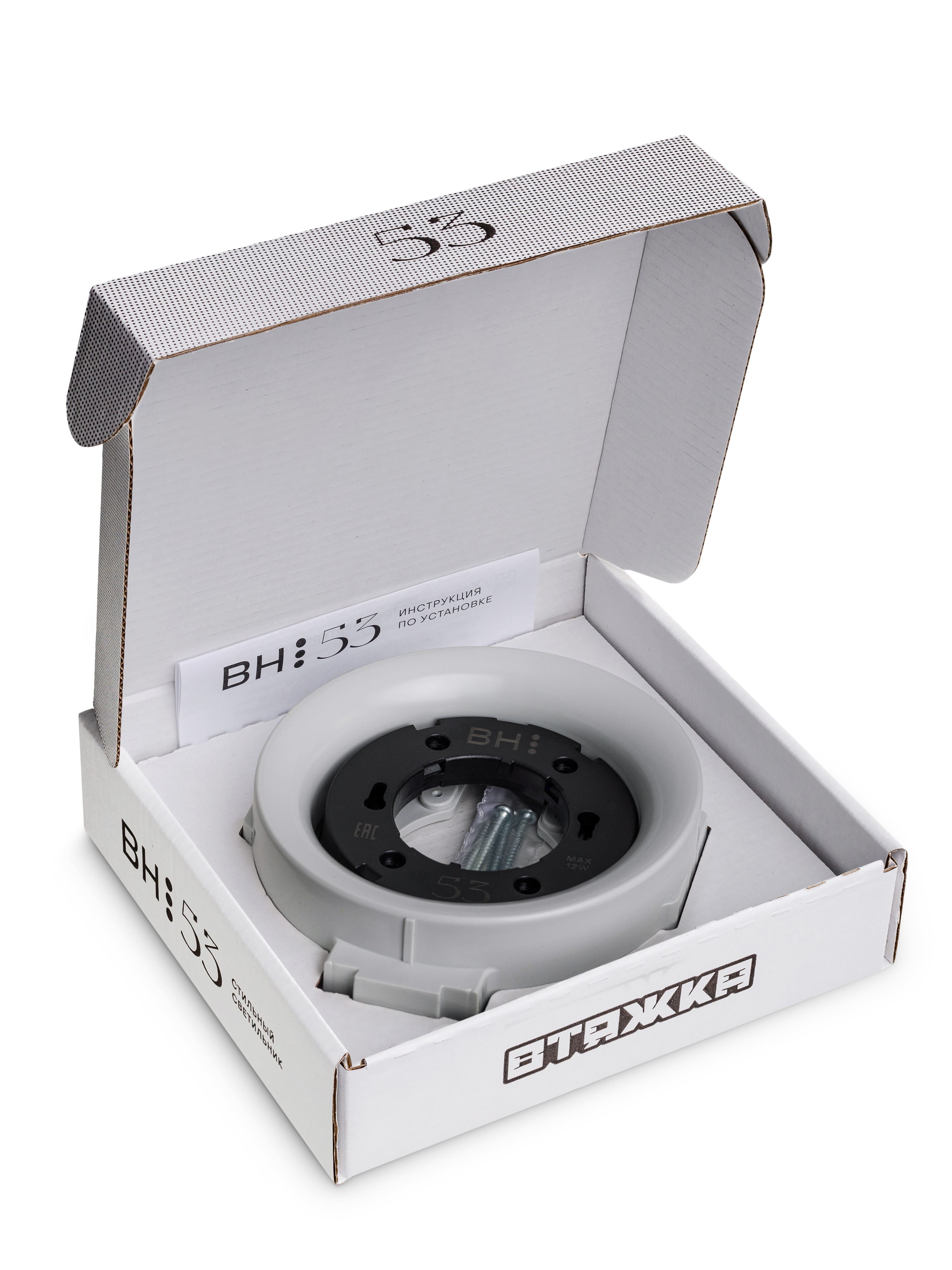 BH53 — первый светильник для натяжного потолка, который не имеет рамки по периметру и встраивается в один уровень с потолком по уникальной технологии монтажа "Втяжка".