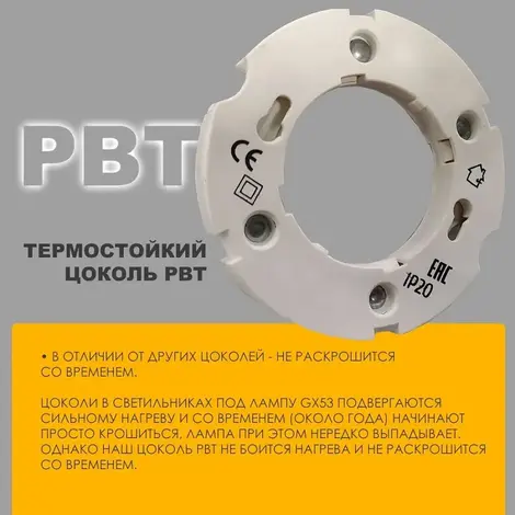 Накладные потолочные светильники этой серии в алюминиевом корпусе оборудованы термостойким цоколем, который не боится нагрева и не раскрошится со временем. Данная модель под лампу GU10 / MR16 предполагает возможность легко заменять лампы, что вместе с термостойким цоколем дает долгий срок службы светильнику.