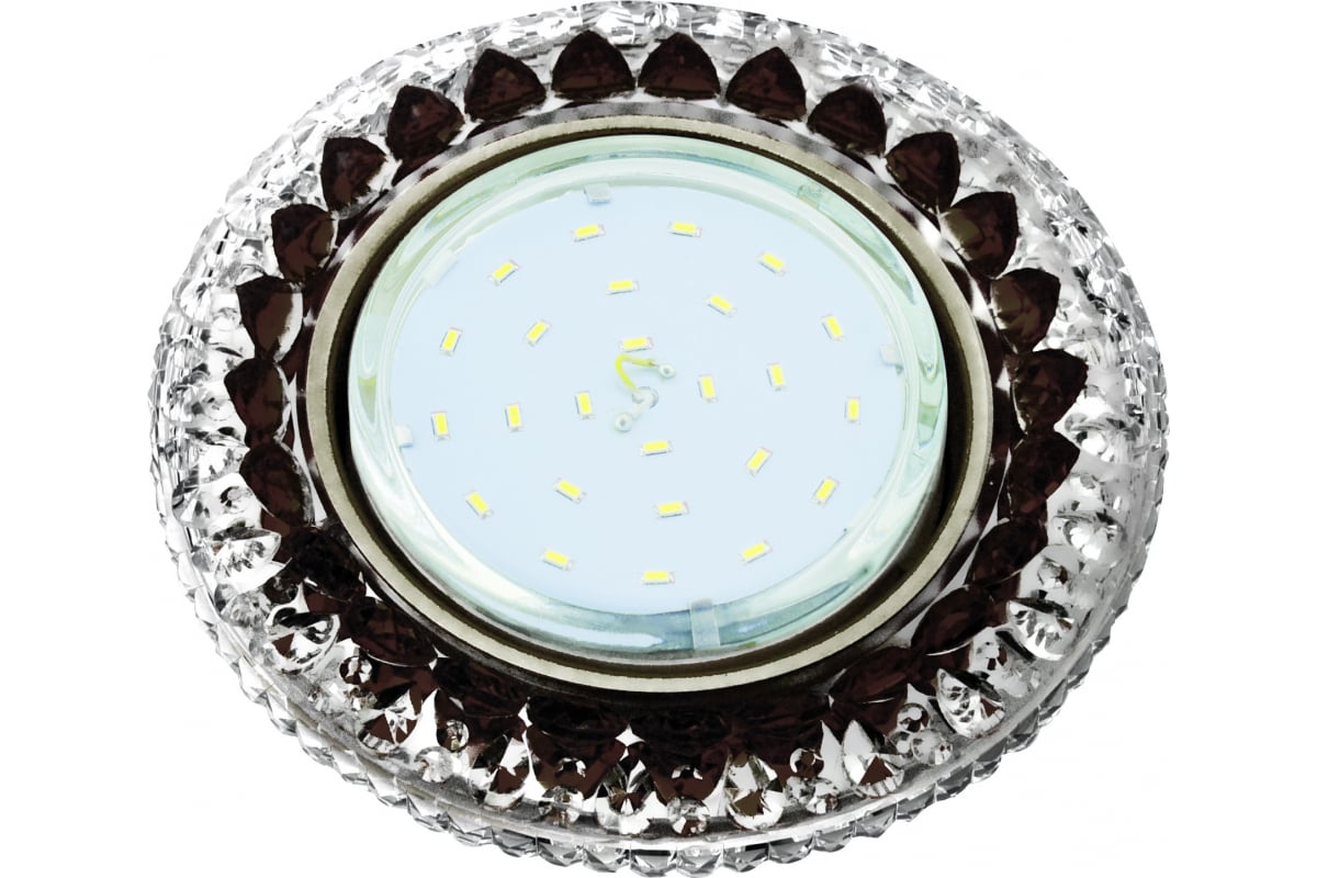 В изысканные интерьеры идеально впишется Ecola GX53 H4 LD7009 Светильник встр. искристый с подсветкой "Кристалл" Прозрачный и Черный / Хром 40x125 (к+).