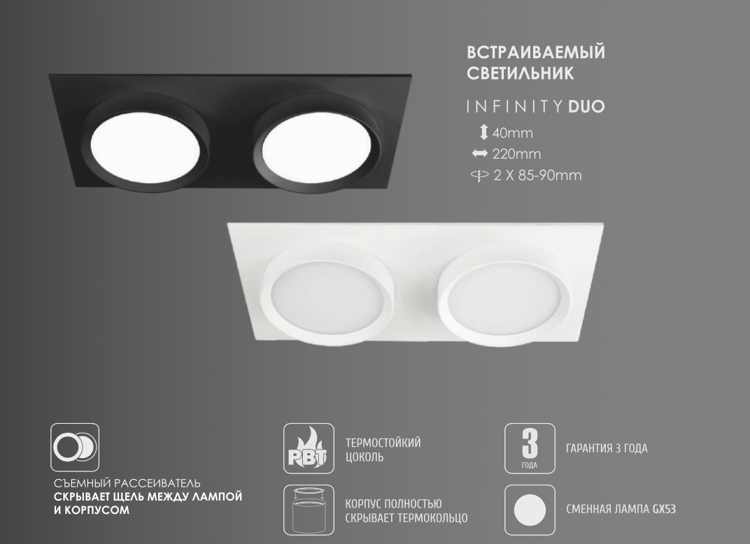 Светильник GX53, ART INFINITY DUO Белый встраиваемый, 220*110